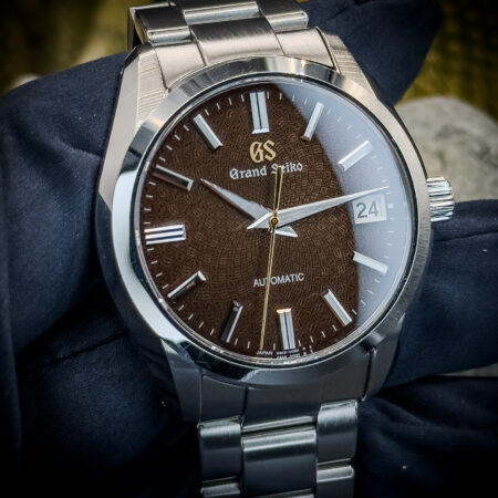 Originally released in 2017 to commemorate the 20th anniversary of the 9S movement, the GS SBGR311 is a limited edition of just 1,300 pieces and features one of the most visually striking dials in modern watchmaking. Nicknamed the “Cookie” for its rich chocolate brown color and unique radial texture, the dial creates a stunning interplay with light that’s signature GS. Housed in a 42mm stainless steel case with Zaratsu polishing and powered by the automatic 9S68 movement, this piece blends precision engineering with artisanal dialwork. A true collector’s GS.
