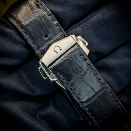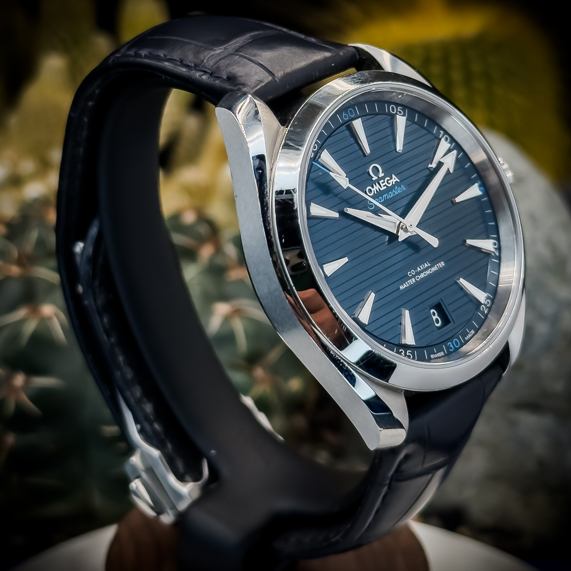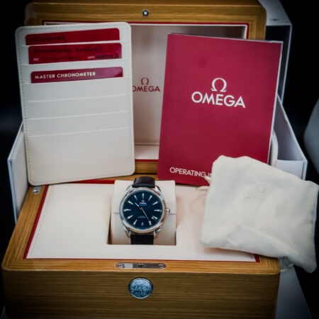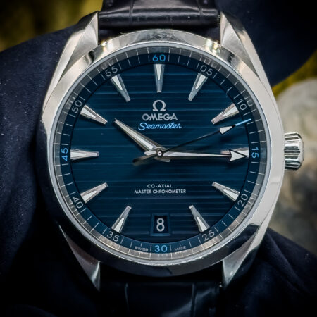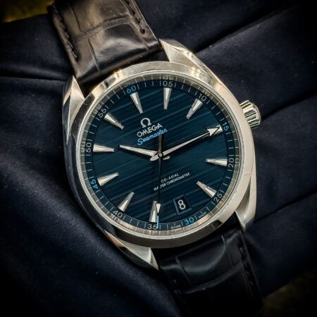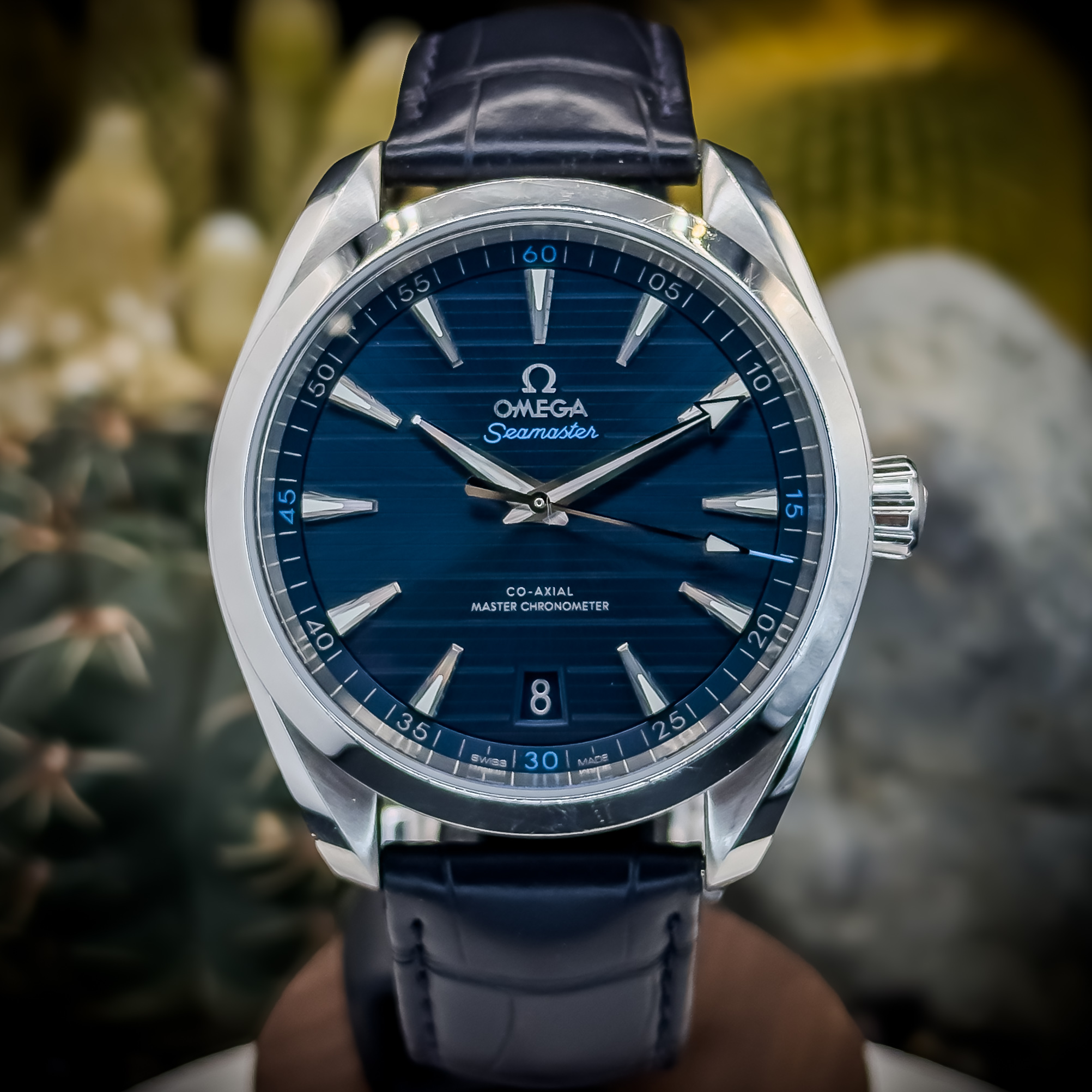 The Seamaster Aqua Terra 150M ref. 220.13.41.21.03.001 is where everyday versatility meets refined Omega design. This 41mm model features a stainless steel case, rich sunburst blue dial with horizontal “teak” pattern, and polished hands/indices filled with luminous material for low-light legibility. Powered by Omega’s METAS-certified Caliber 8900, it’s anti-magnetic, accurate, and stylish enough to go from boat deck to boardroom without skipping a beat.
