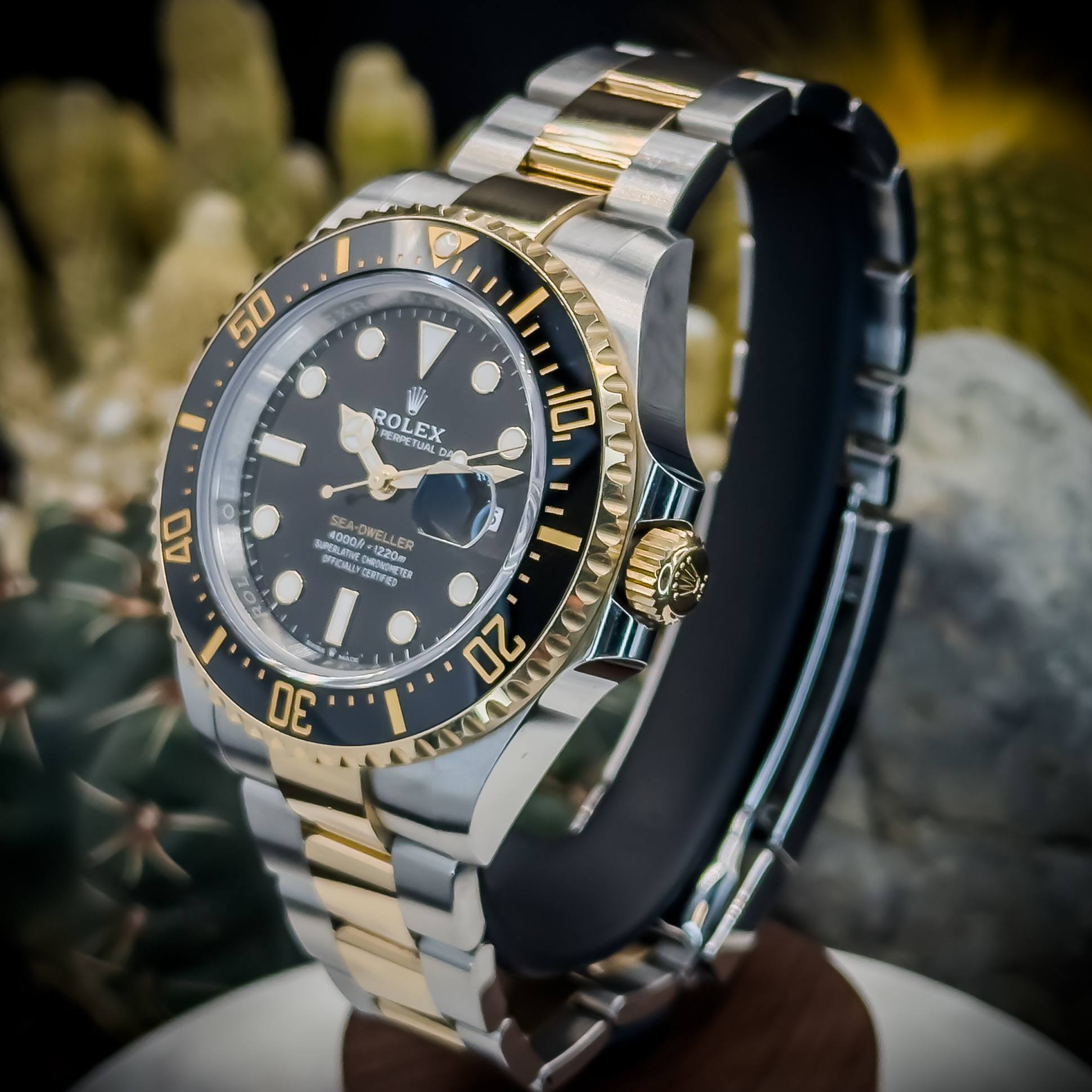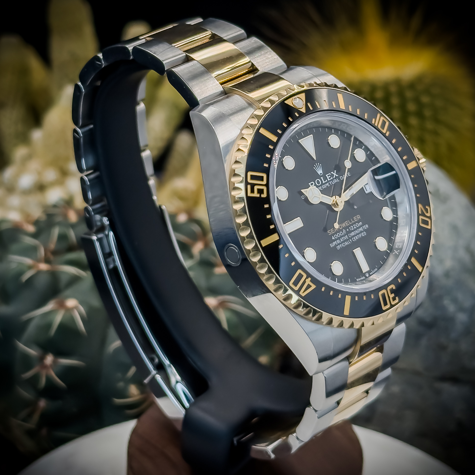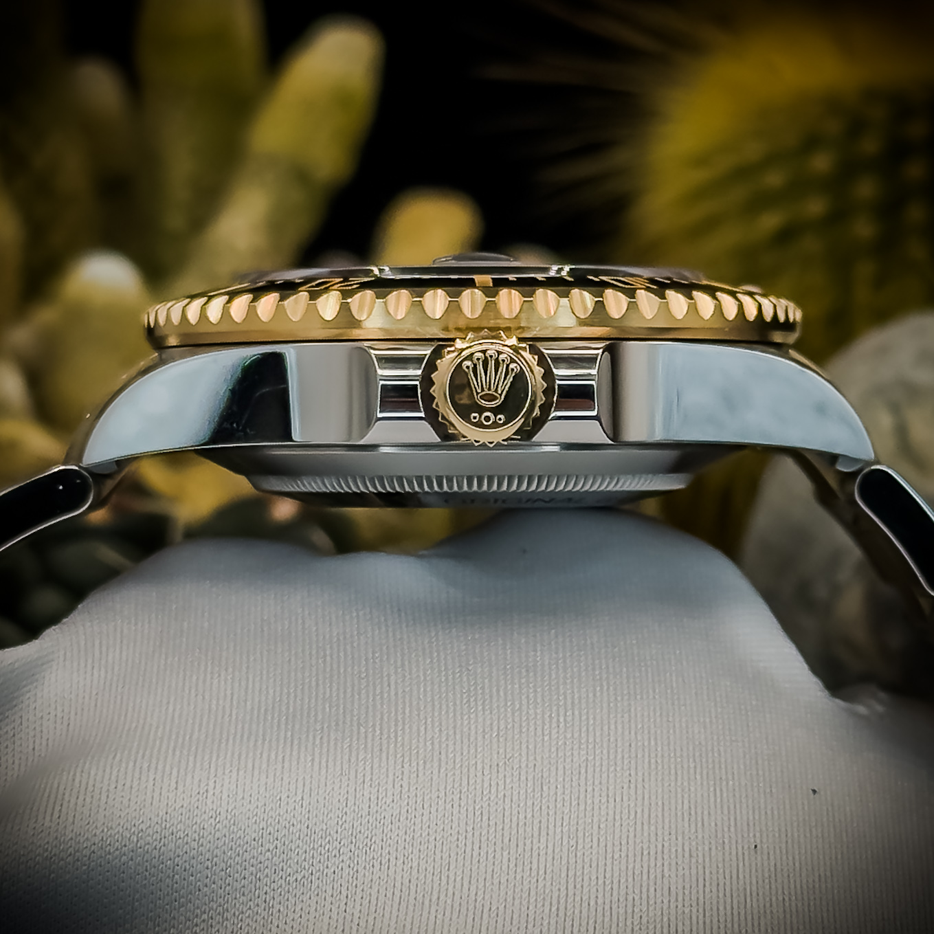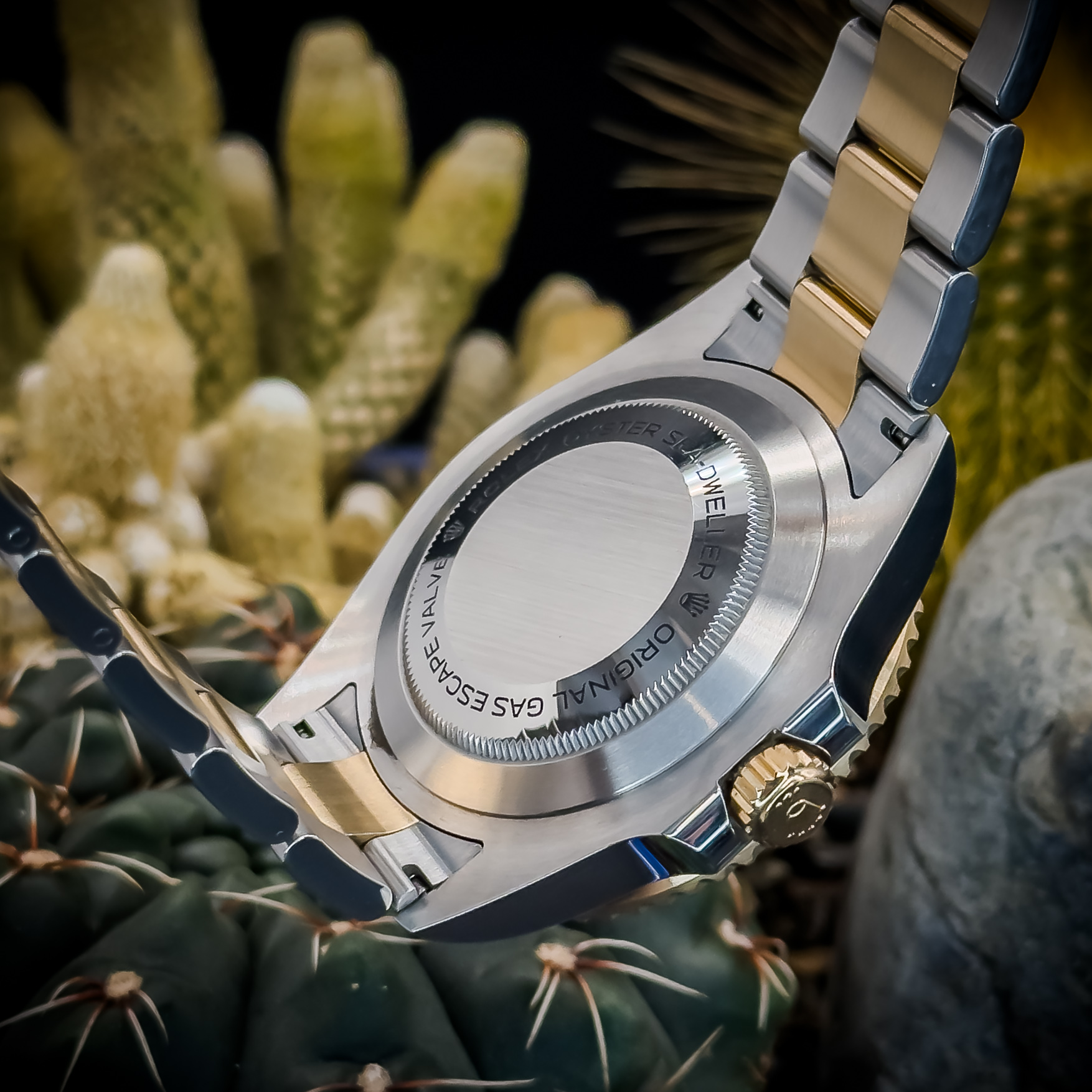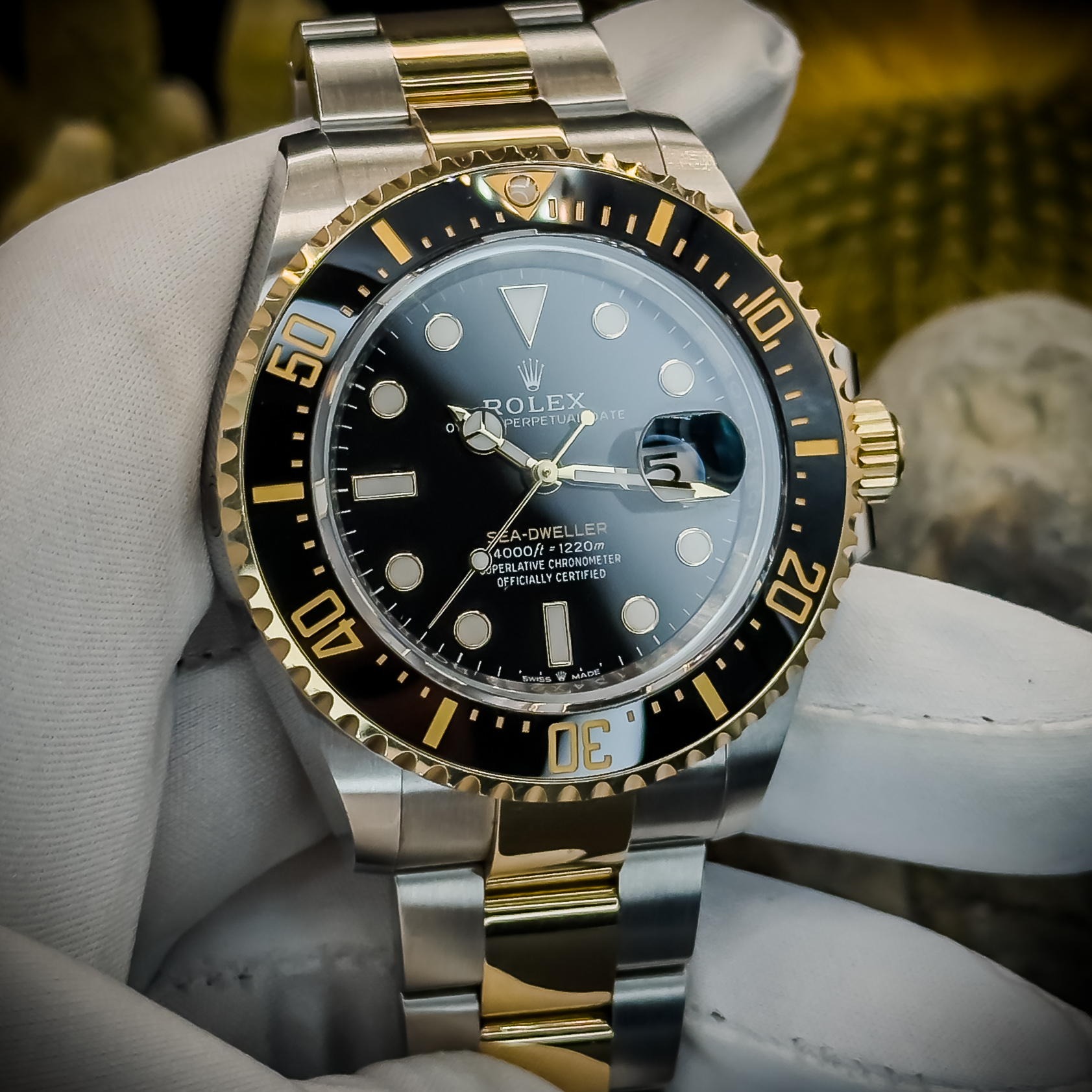 The Sea-Dweller is water-resistant to 1,220 meters, built with Rolex’s signature Oystersteel and 18k yellow gold, and powered by the Caliber 3235 movement. Plus, a helium escape valve—because you never know when a weekend trip turns into a deep-sea salvage mission… or when brunch with your in-laws feels like a pressurized environment.