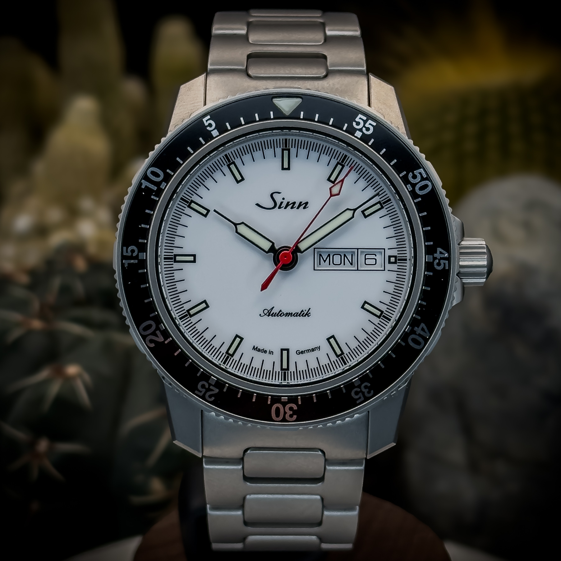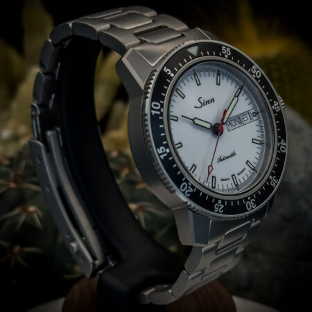 Released in early 2025 as a limited edition of only 200 pieces, the Sinn 104 Matte RS White is one of the cleanest, most balanced tool watch executions in recent memory. Offered exclusively through WatchBuys, it features a crisp matte white dial, vibrant red seconds hand, and Sinn’s signature bidirectional countdown bezel. The drilled-lug 41mm satin matte case, sapphire display back, and fully stickered H-link bracelet round out the perfect package. Powered by the reliable SW220-1 automatic movement and backed by Sinn’s April 2025 factory warranty, this is a phenomenal piece for both daily wear and collection.